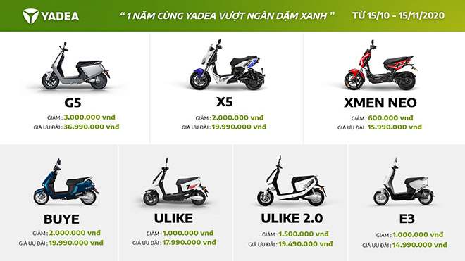 YADEA Việt Nam công bố chương trình “1 năm cùng YADEA vượt ngàn dặm xanh” có tổng ưu đãi lên đến 50 tỷ đồng hấp dẫn chưa từng có khi mua xe máy điện YADEA từ 15/10 đến 15/11/2020, với thông điệp đồng hành cùng hàng triệu người dùng Việt  lan tỏa lối sống xanh nhằm giảm thiểu ô nhiễm không khí.